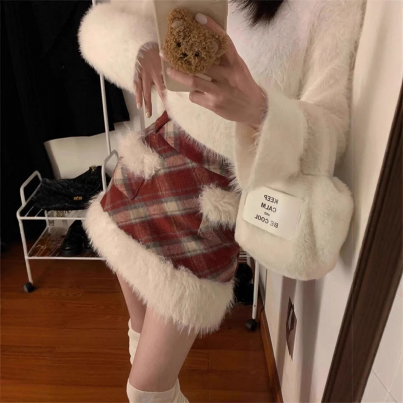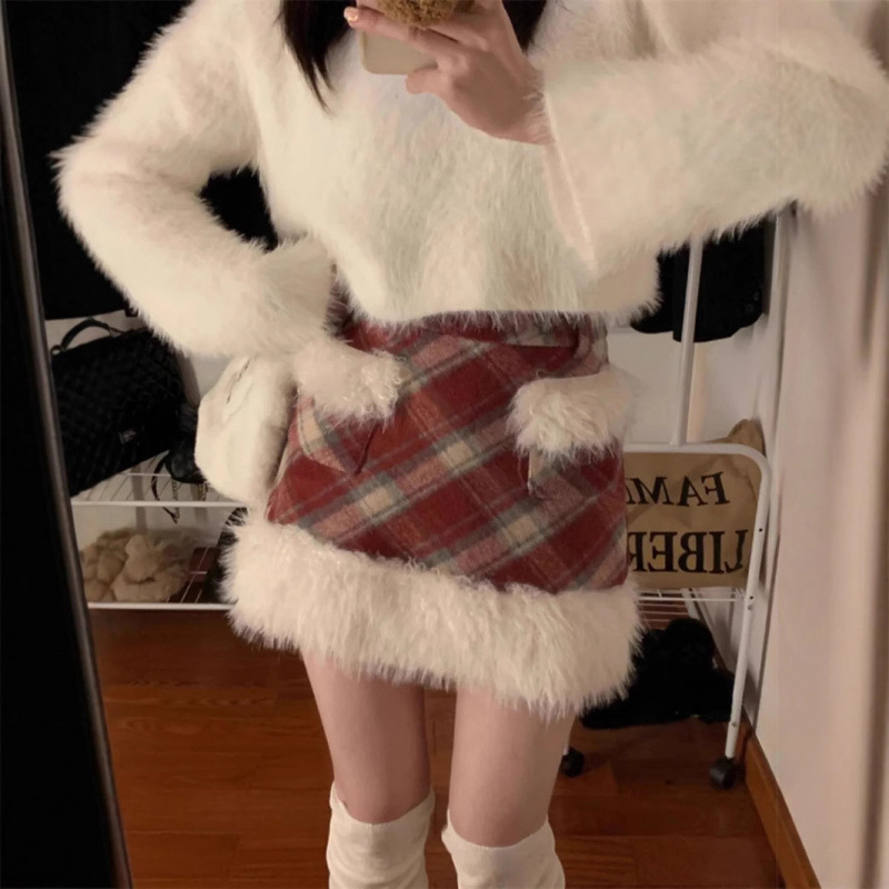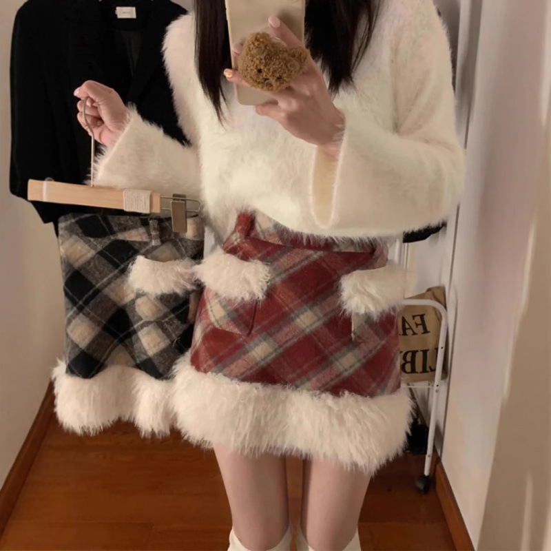 ふわふわのファー素材が贅沢に施されたチェックスカートです。