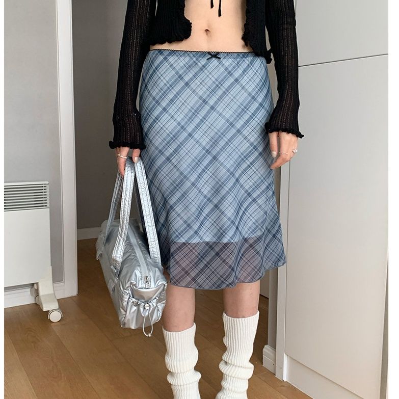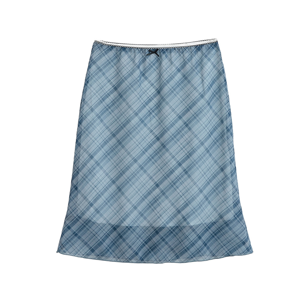 トレンド感のある斜めチェック柄が目を引くロングスカートです。