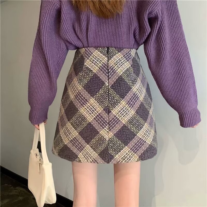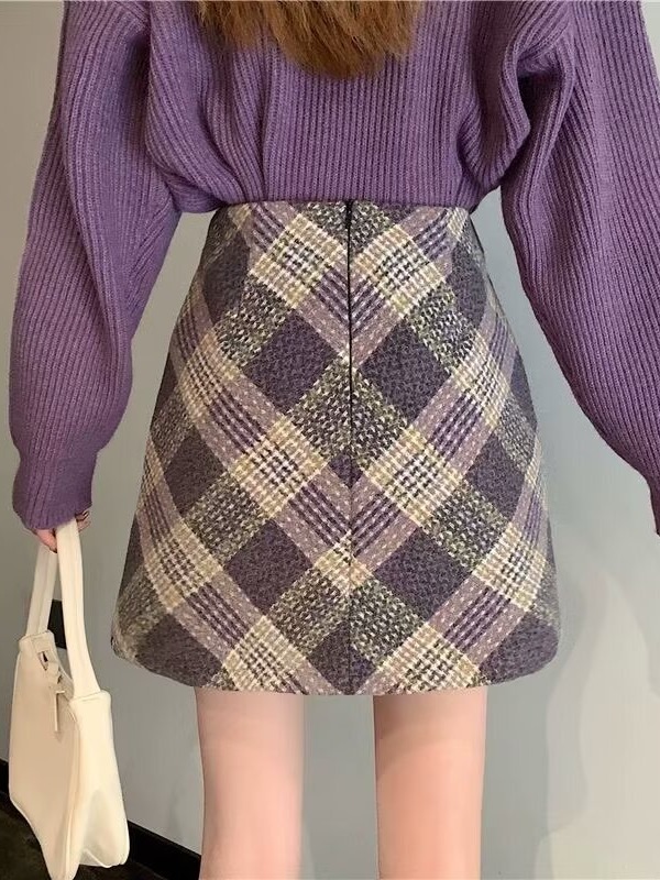 上品な斜め格子柄が印象的なチェックスカートです。