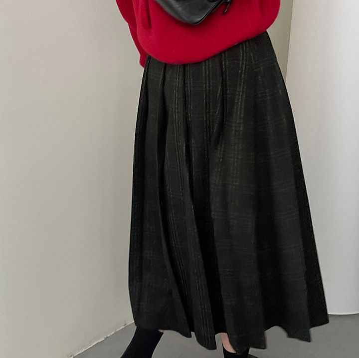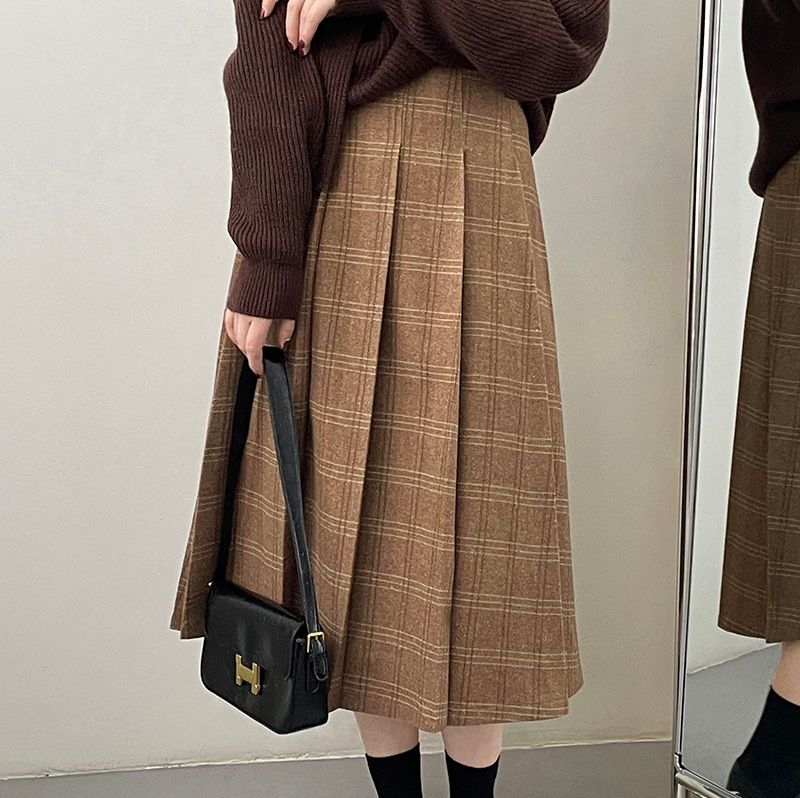 上品なグレンチェック柄が印象的なプリーツデザインのロングスカートです。