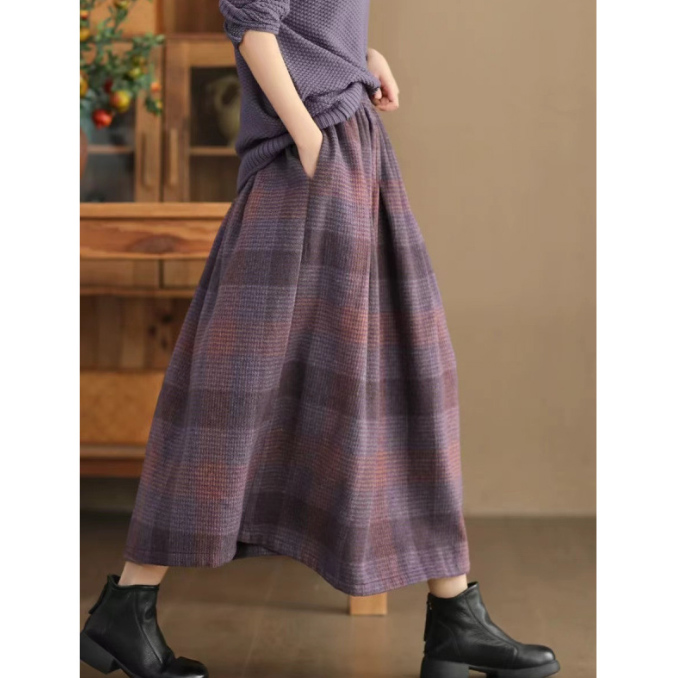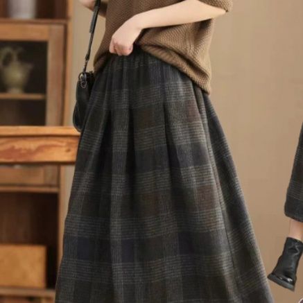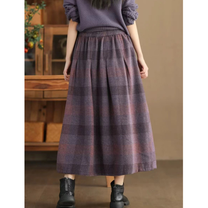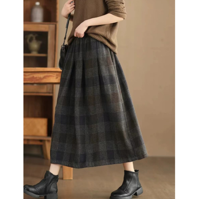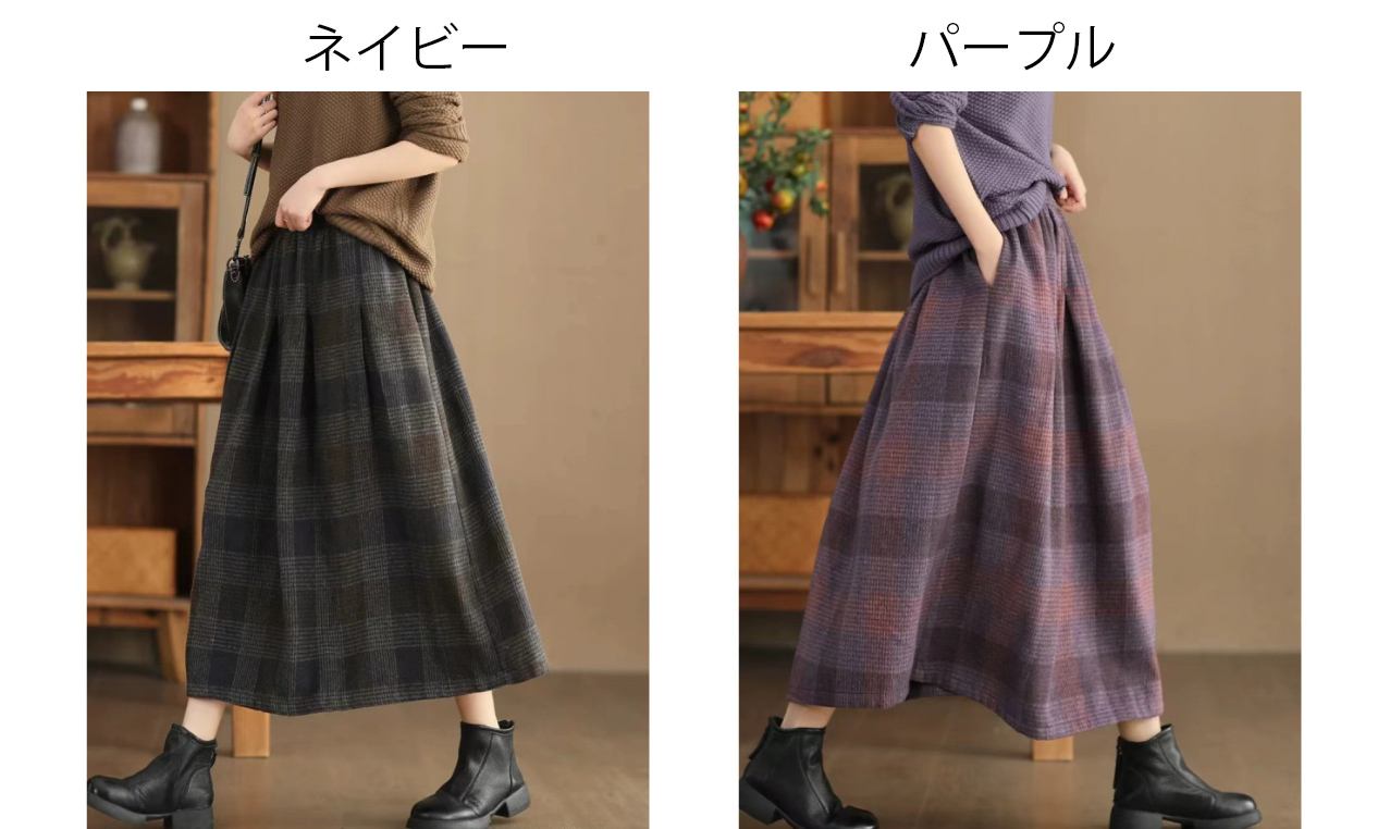 上品なチェック柄が魅力的なロング丈スカートです。