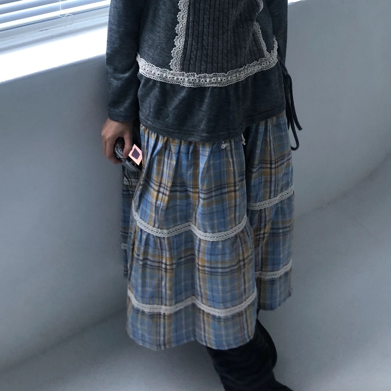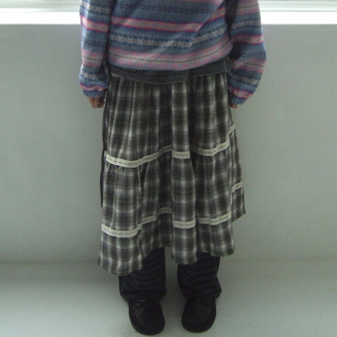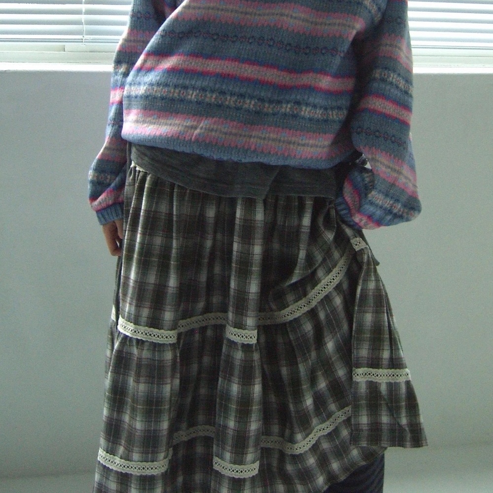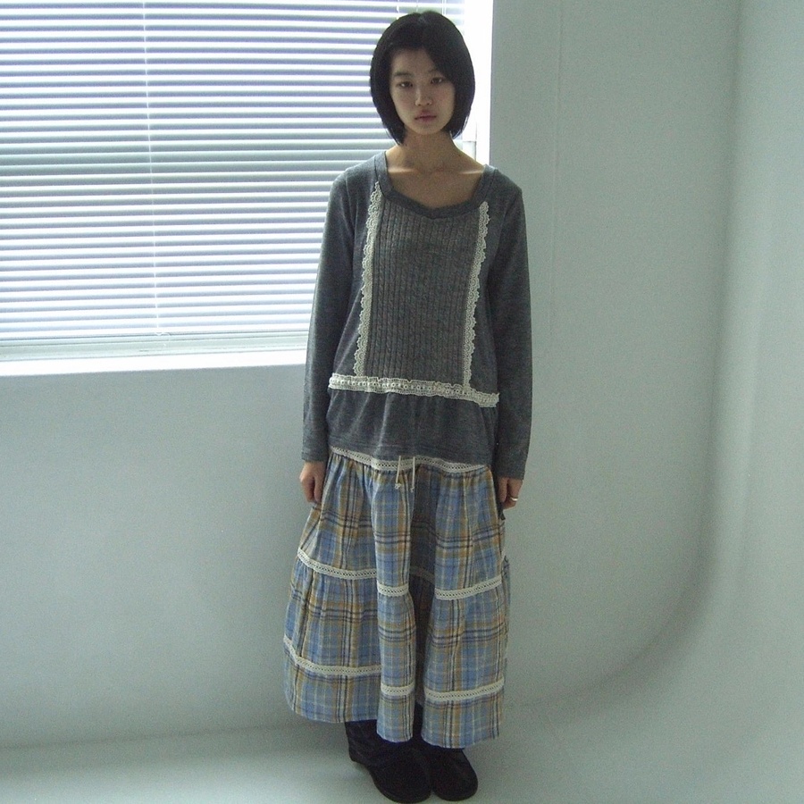 今季注目のチェックスカートが登場。 繊細なレースがあしらわれた上品なロング丈で、甘めスタイルを演出。 ティアードデザインが女性らしいシルエットを作り、どんなトップスとも相性抜群。 おしゃれで気品のある着こなしが叶う一着です。