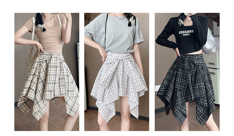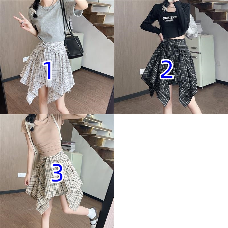 個性的なアシンメトリーなティアード裾が魅力的なチェックスカートです。