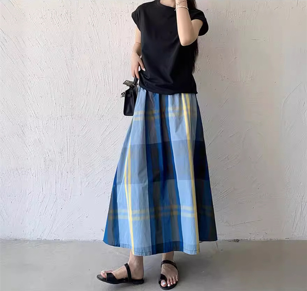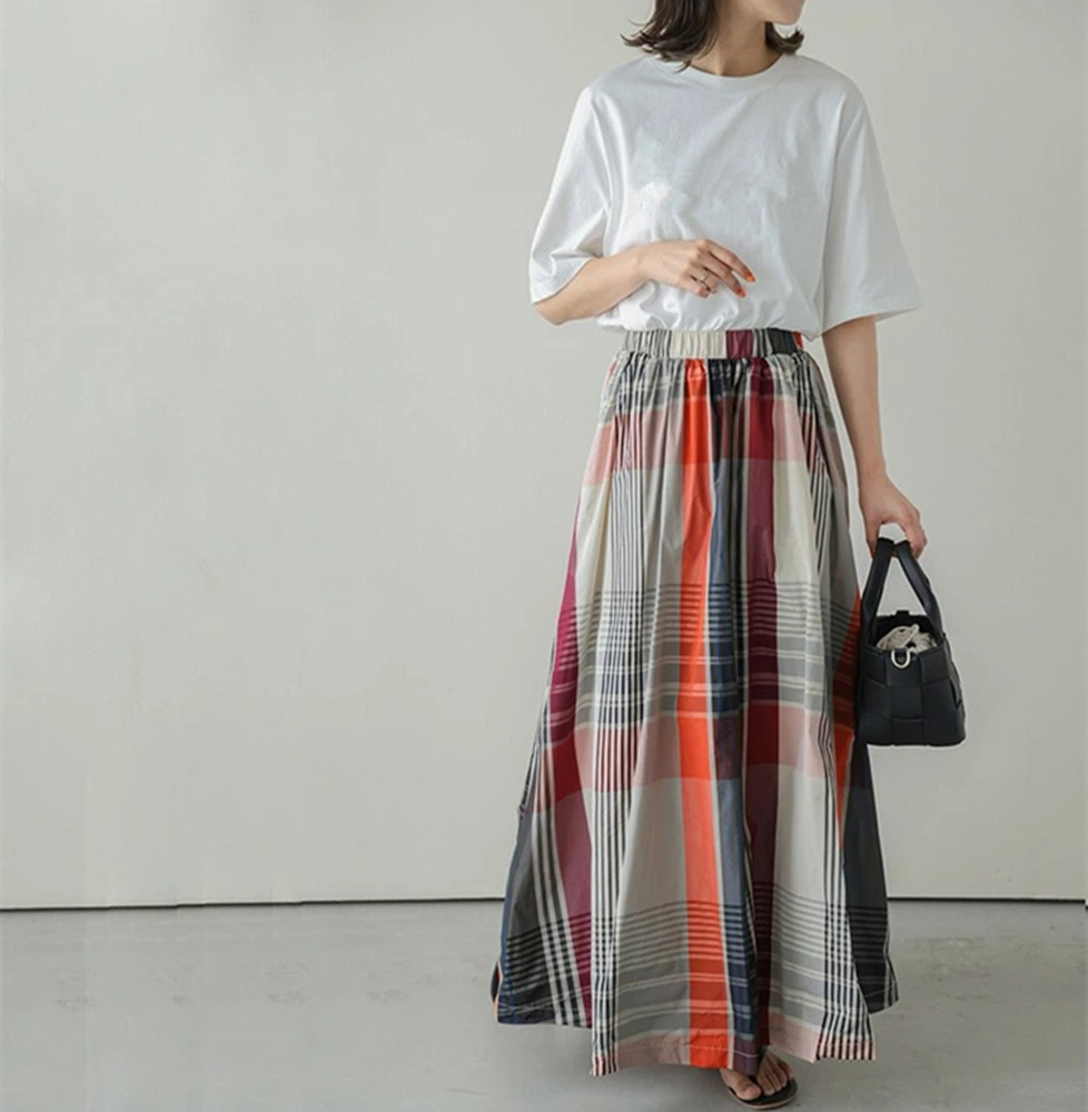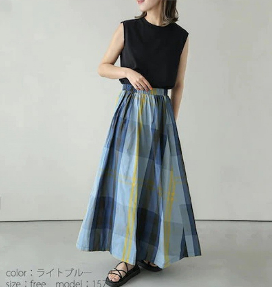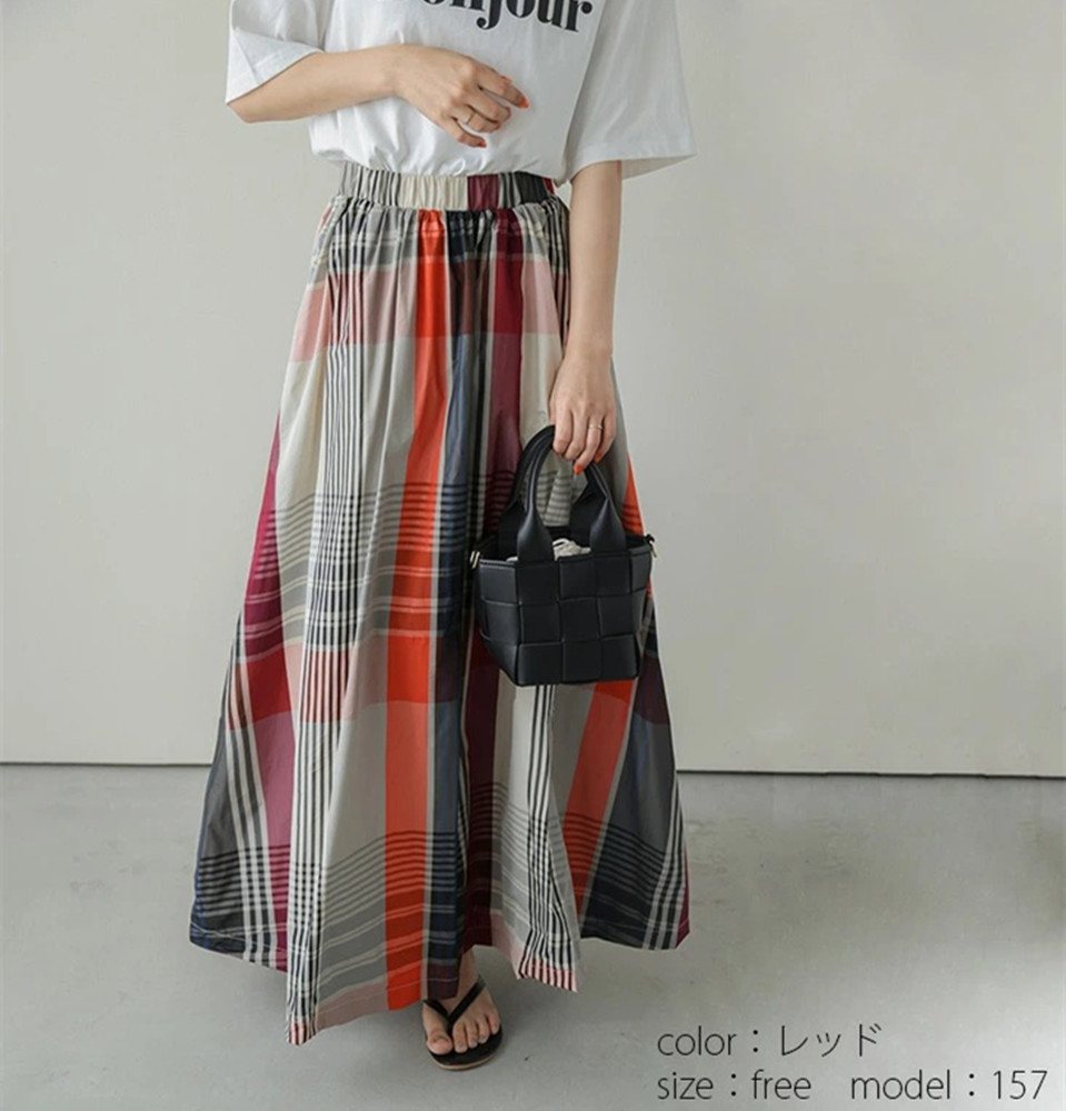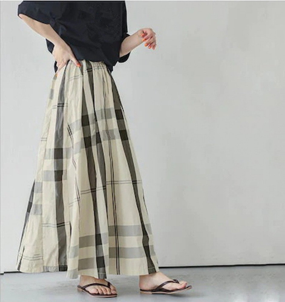 大人カジュアルに着こなせるチェックスカートのロング丈デザイン。