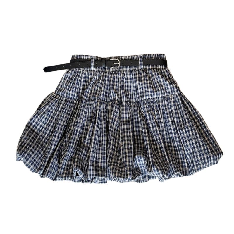 落ち着いた色合いのチェックスカートで、カジュアルからきれいめまで幅広いスタイルに対応。