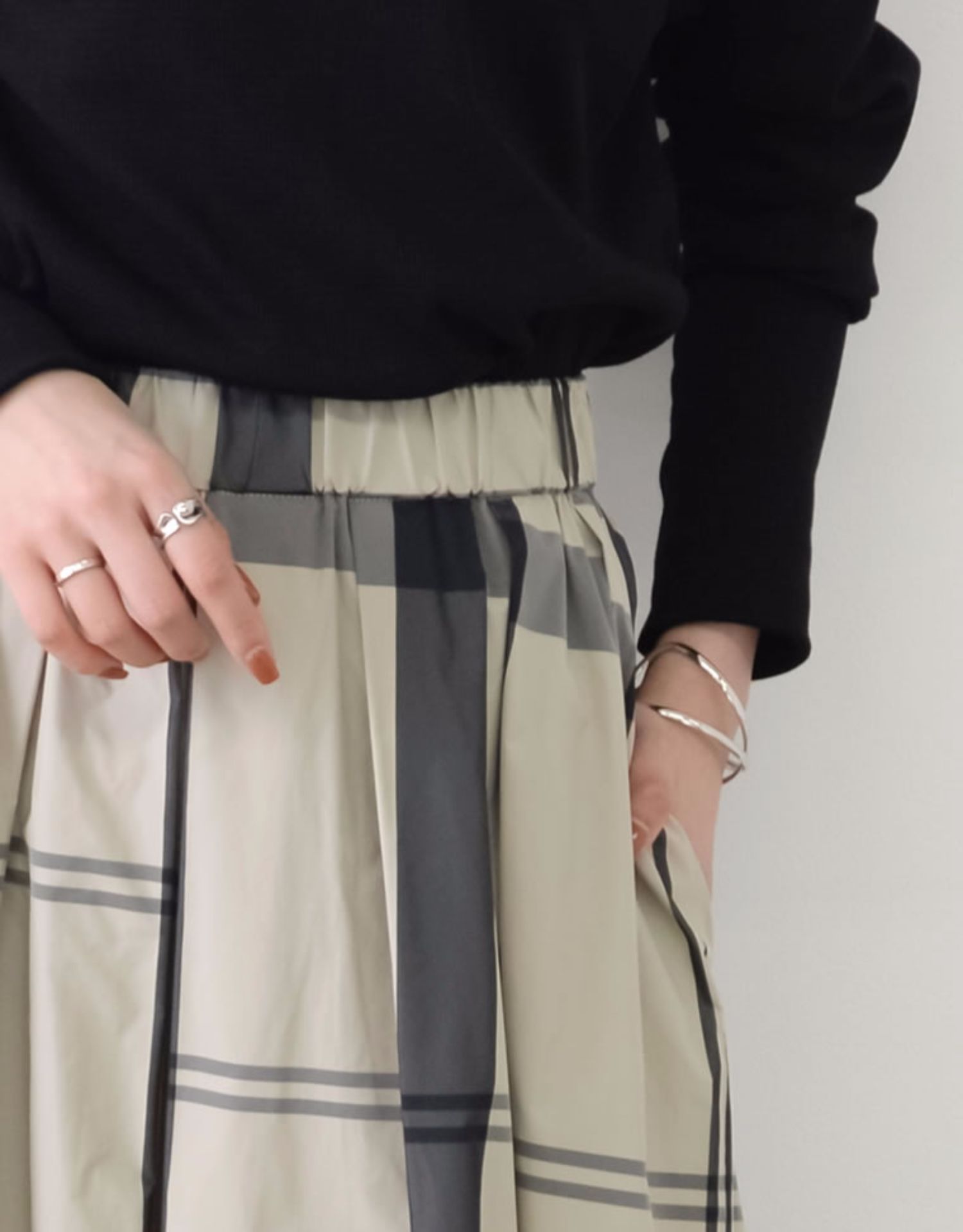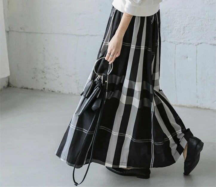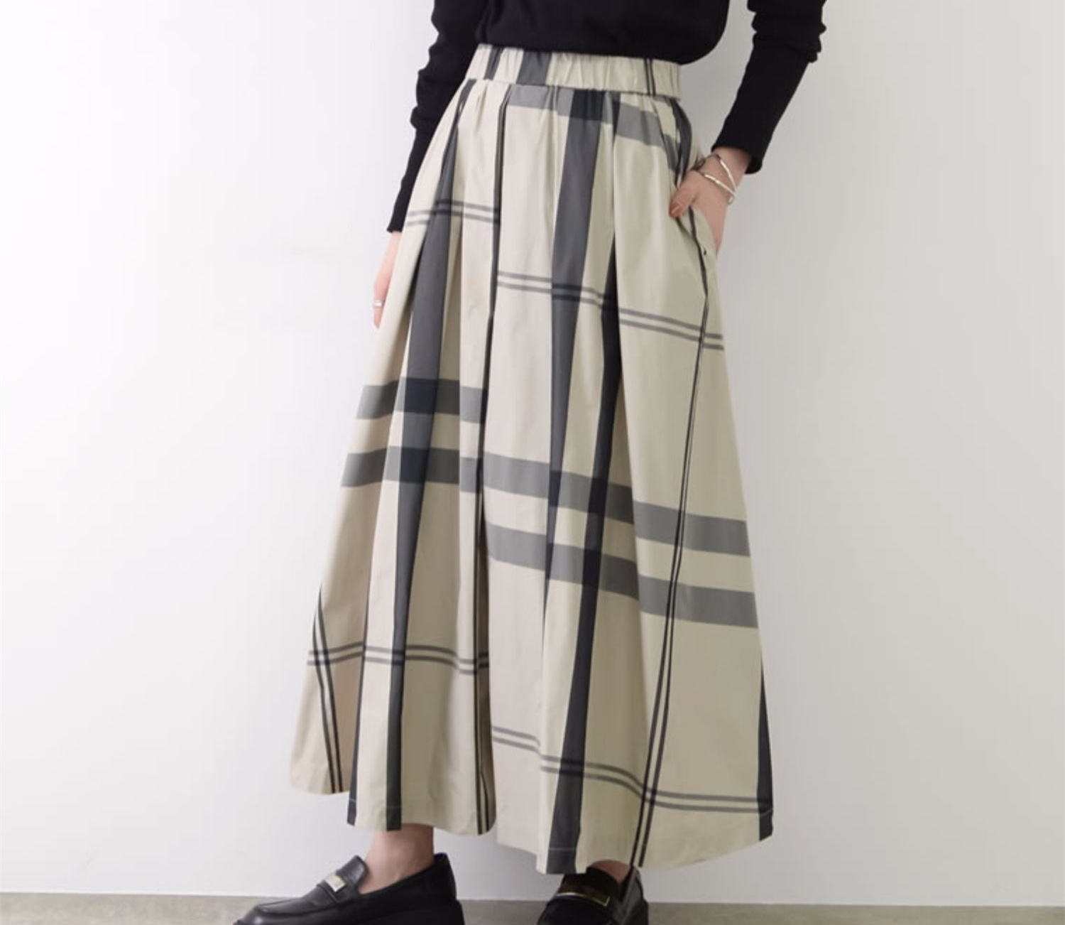 大人カジュアルに着こなせるチェックスカートのロング丈デザイン。